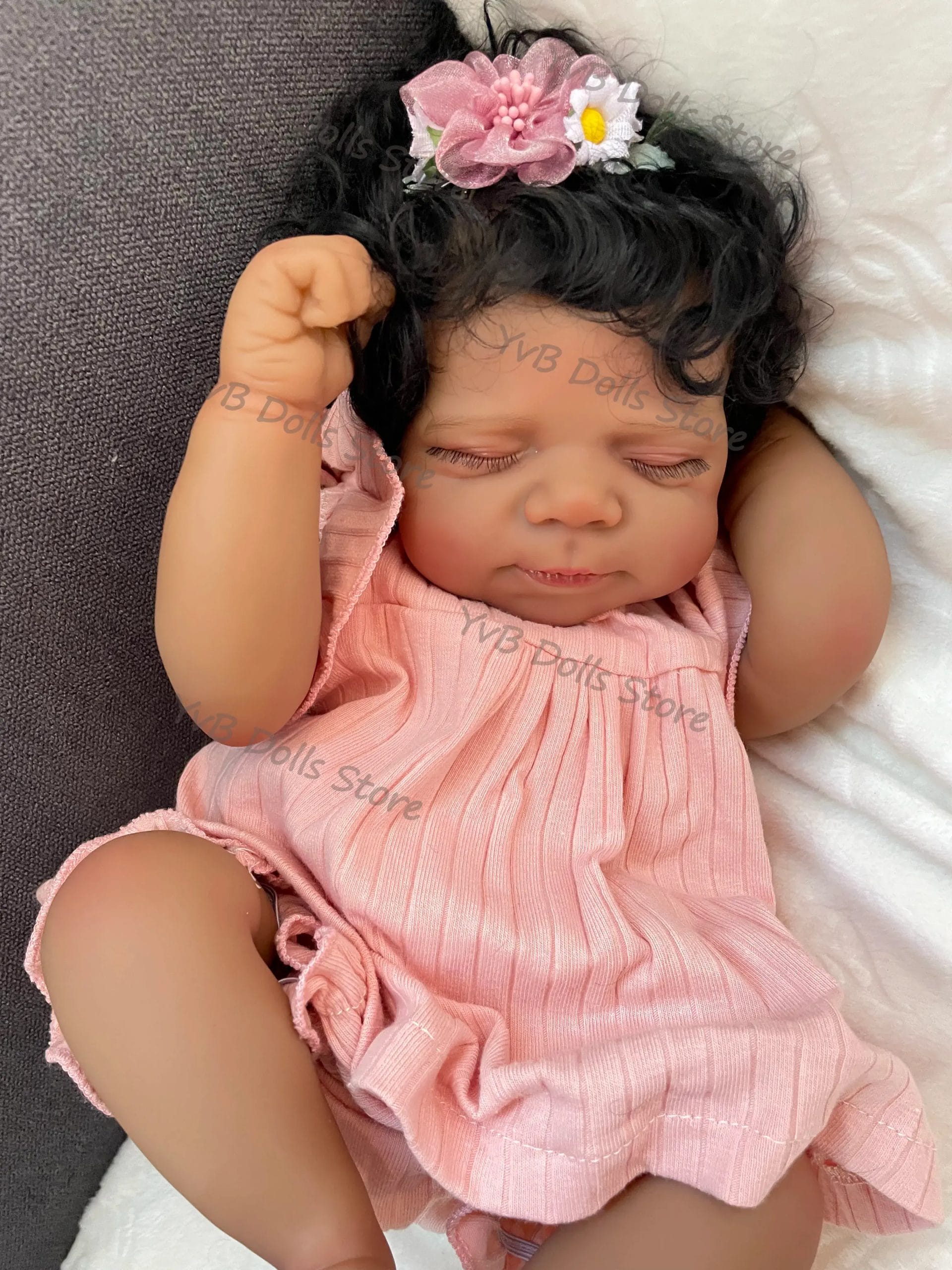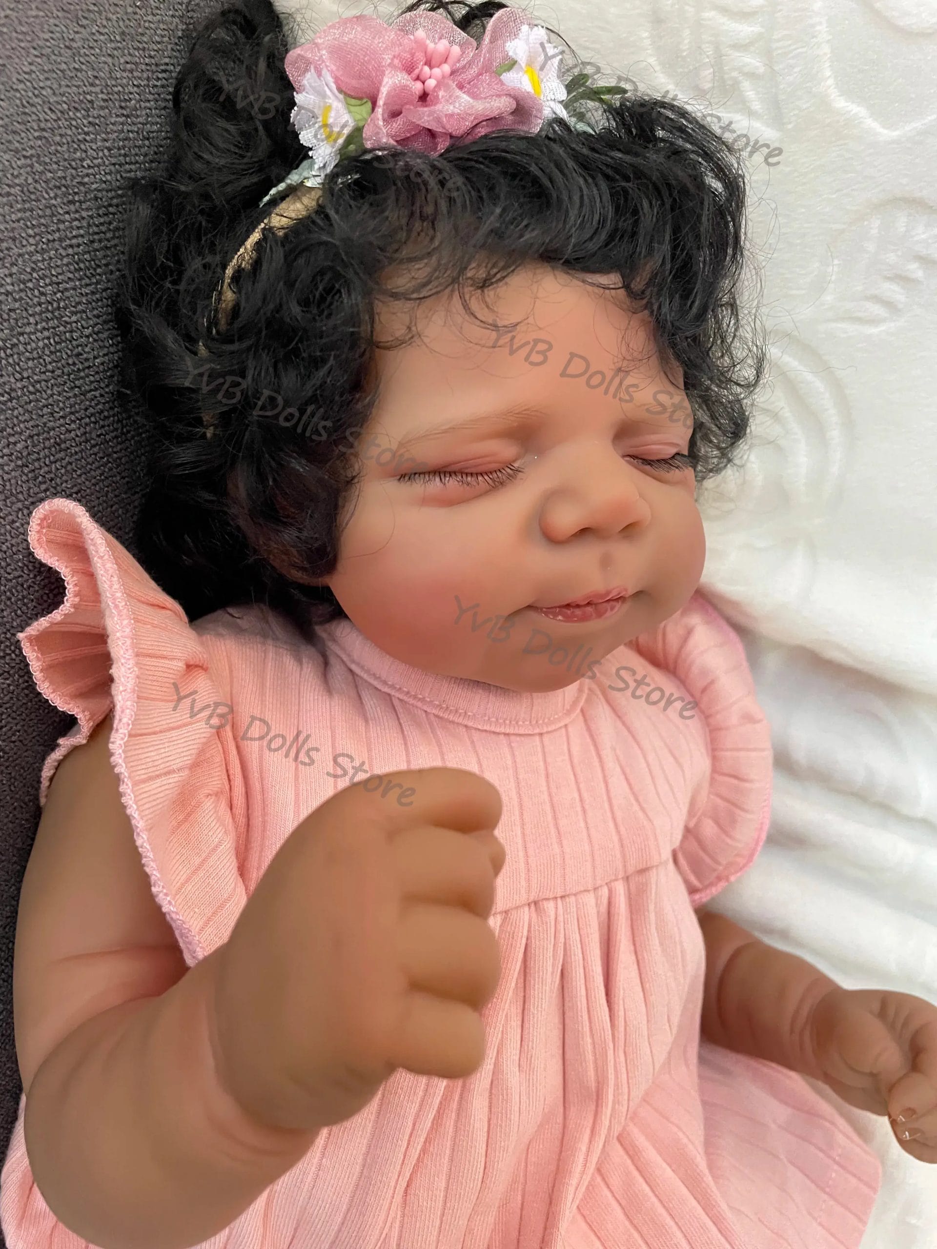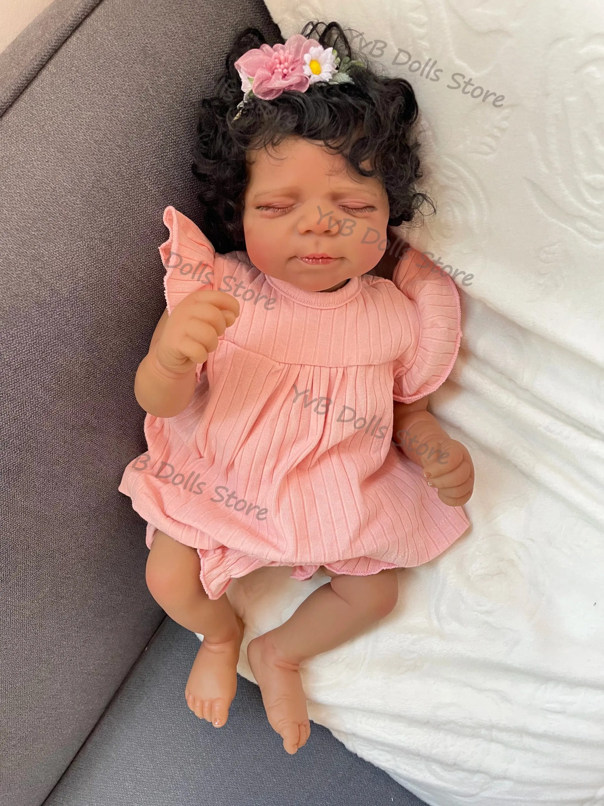 19inch Pascale Dark Skin Soft Cloth Body Multiple Layers Painting Reborn Sleeping Baby Doll 3D Skin With Hand Rooted Curly Hair