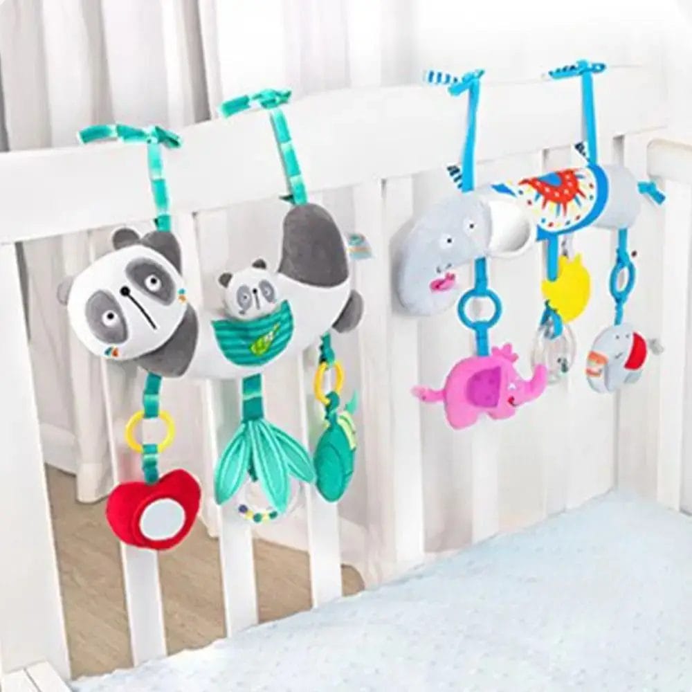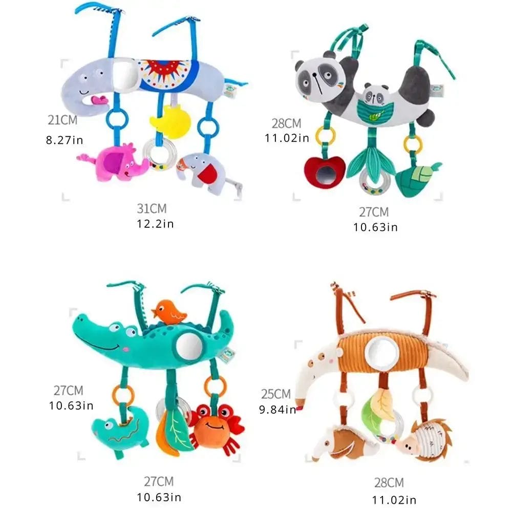 Animal-shaped Baby Stroller Hanging Pendants with Strap Distorting Mirror Plush Stuffed Sensory Toy Visual Development