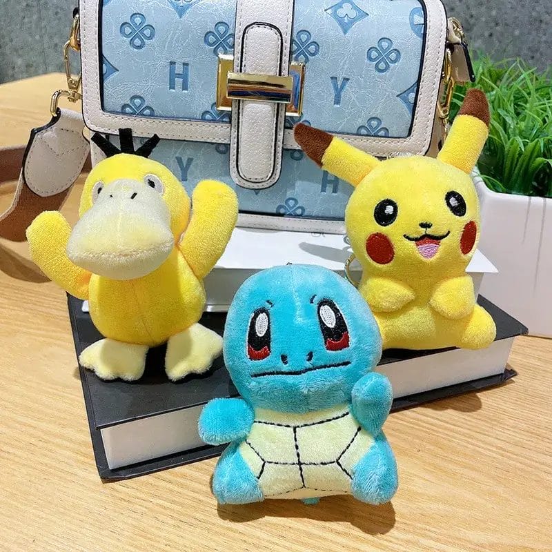 Anime Pokemon Plush Doll Keychain Pikachu Psyduck Squirtle Soft Stuffed Key Ring Cartoon Plushies Bag Pendant Gift Kids Toys