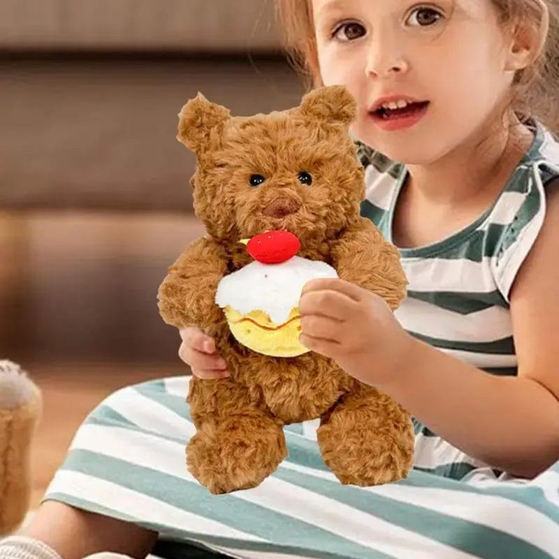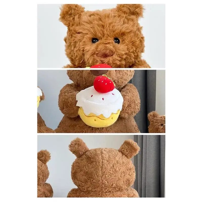 Bear Stuffed Animal Hold Cake Cute Plush Toy Soft Stuffed Animal Brown Stuffed Doll Plushie Home Decor For Baby Shower & Kids