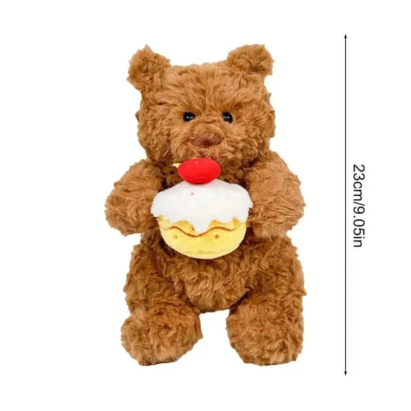 Bear Stuffed Animal Hold Cake Cute Plush Toy Soft Stuffed Animal Brown Stuffed Doll Plushie Home Decor For Baby Shower & Kids