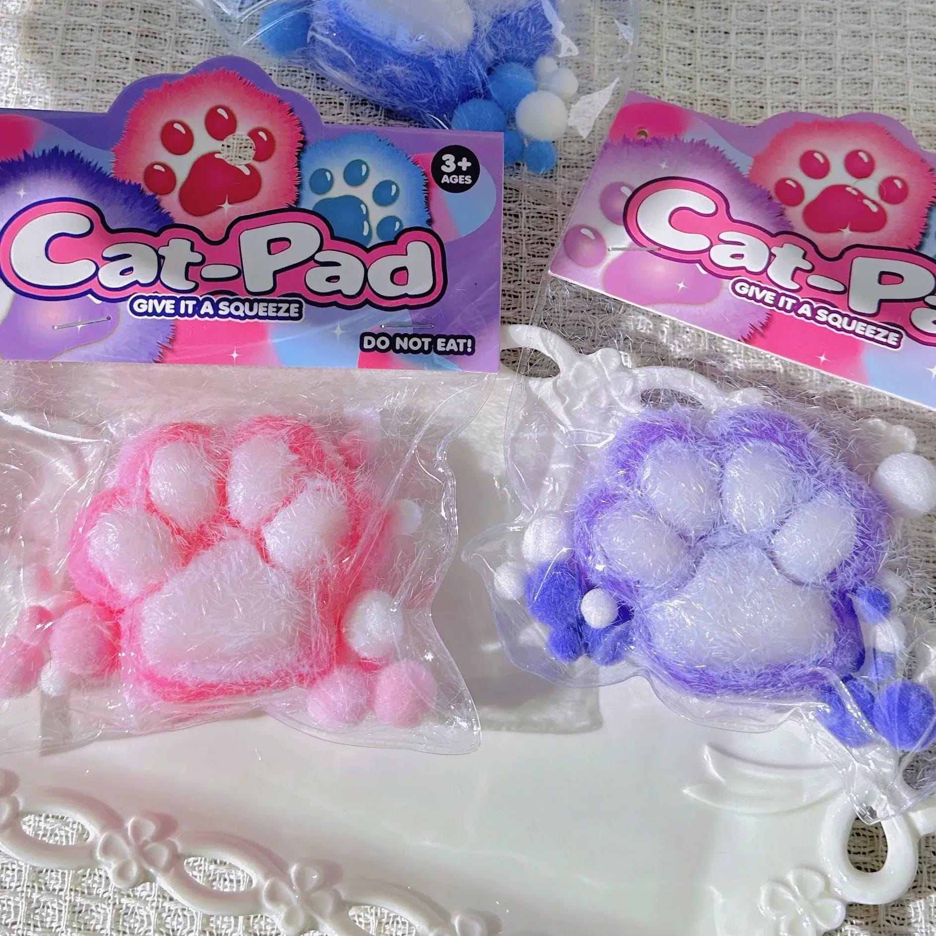 Squeeze Cat's Paw with Fur Stress Relief Squishy Fidget Toy Mini Kawaii Plush Silicone Sticky Decompressing Pinching Cat Foot