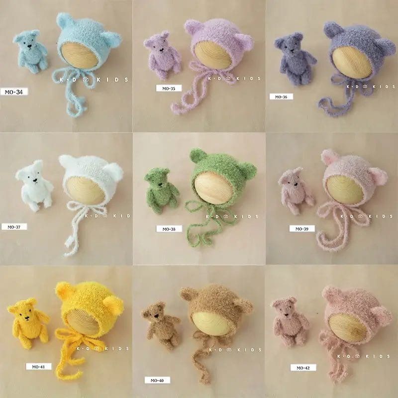 Cute Baby Bear Hat Doll Plush Adjustable Cap Infant Bear Toy Photo Decoration Newborn Photography Props Studio Shoot Accessories