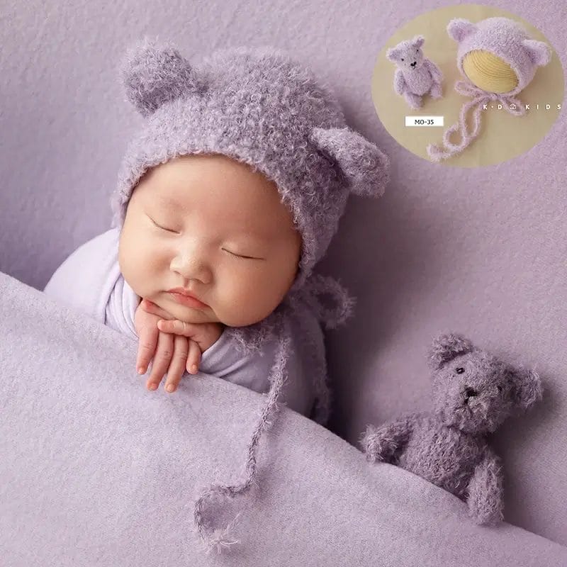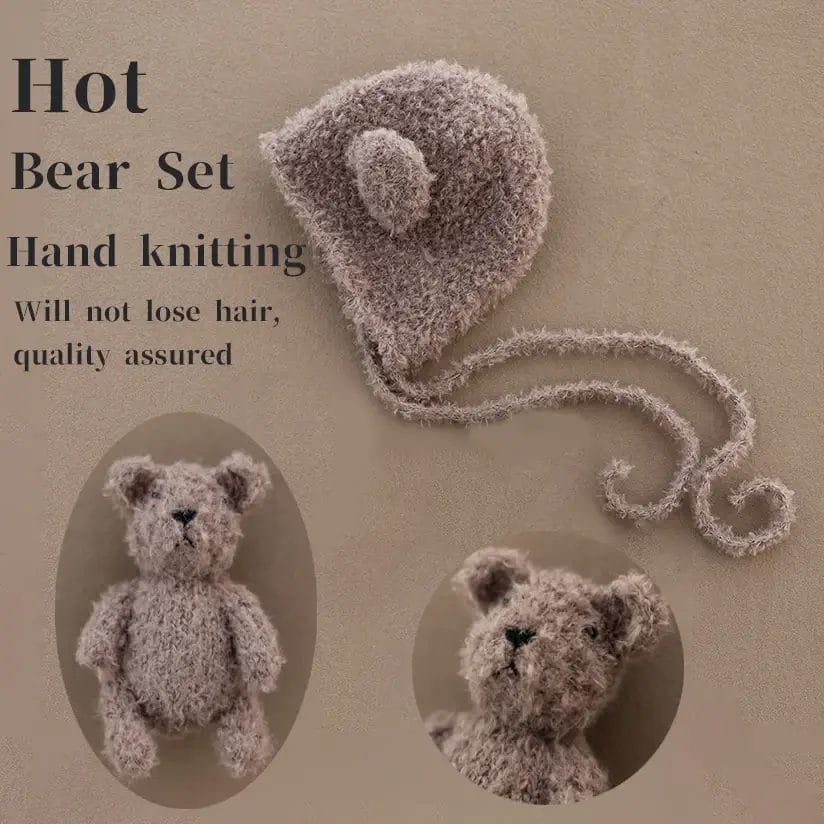Cute Baby Bear Hat Doll Plush Adjustable Cap Infant Bear Toy Photo Decoration Newborn Photography Props Studio Shoot Accessories