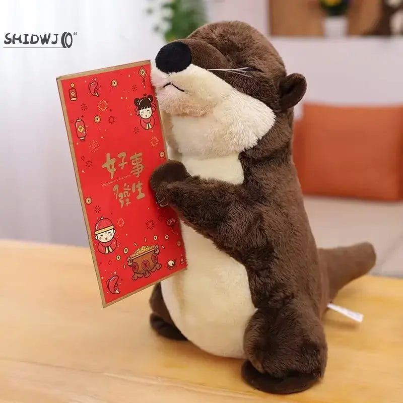 Cute Otters Holding Fish Plush Toy Car Interior Cartoon Sea Otter Stuffed Animal Decor Accessories For Kids Girls Birthday Gift