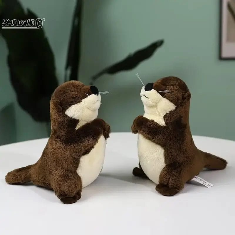 Cute Otters Holding Fish Plush Toy Car Interior Cartoon Sea Otter Stuffed Animal Decor Accessories For Kids Girls Birthday Gift