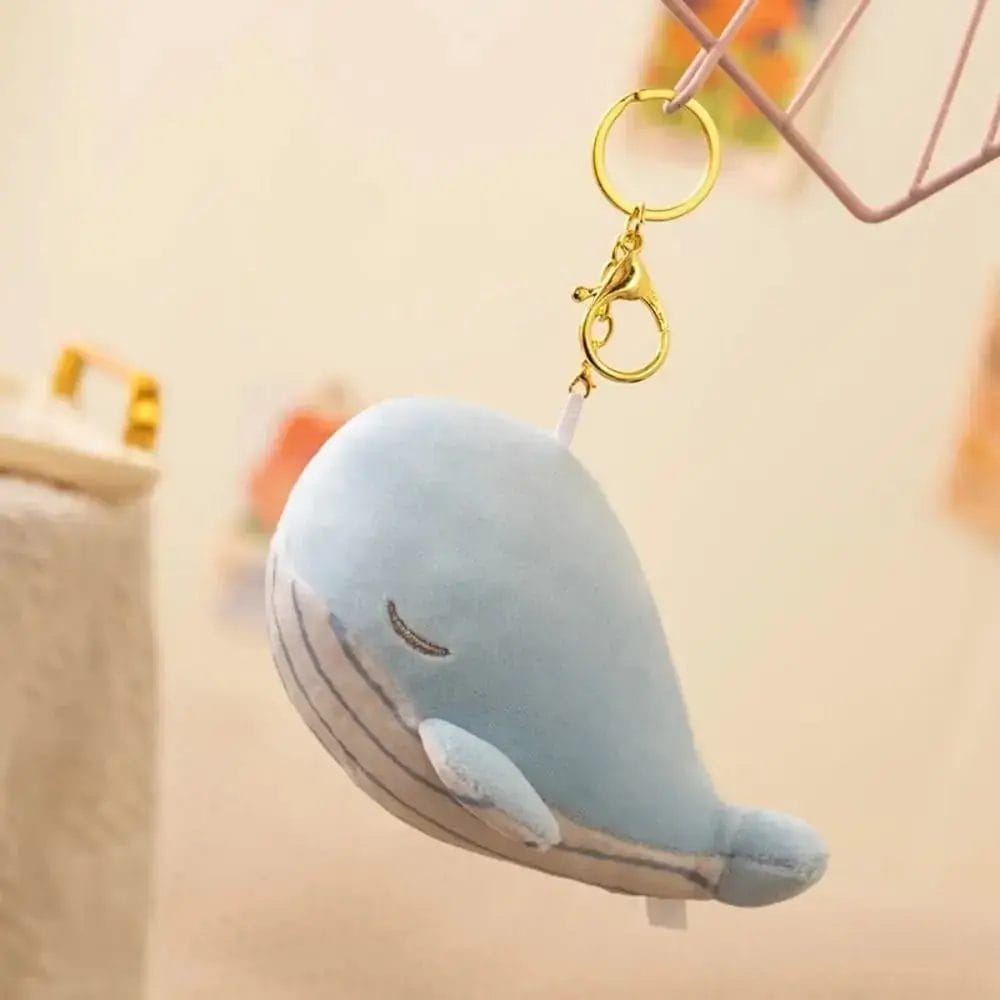 Cute PP Cotton Plush Whale Keychain Fluffy Collection Animal Whale Small Pendant Ins Cartoon Whale Plush Toy Home Decor