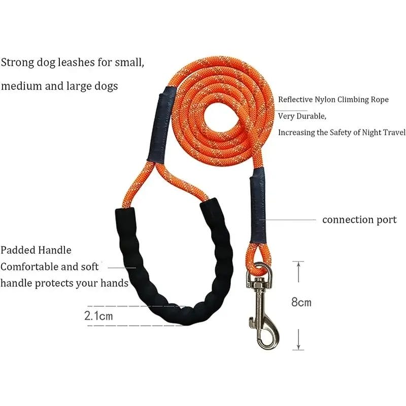 Dog Leash Reflective Long Lead Training Tracking Line Foam Handle Heavy Duty Pet Rope 2m 3m 5m 10m 15m 20m for Small/Large Dogs