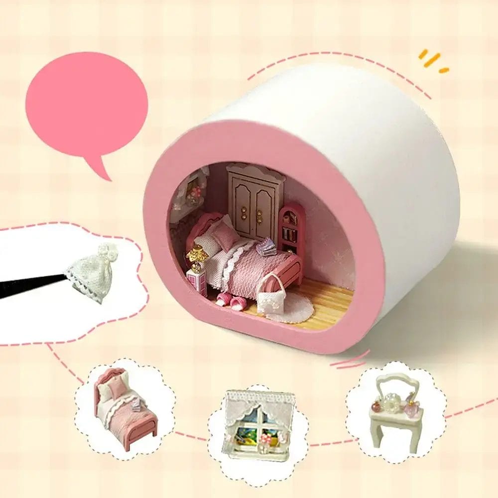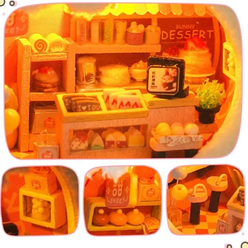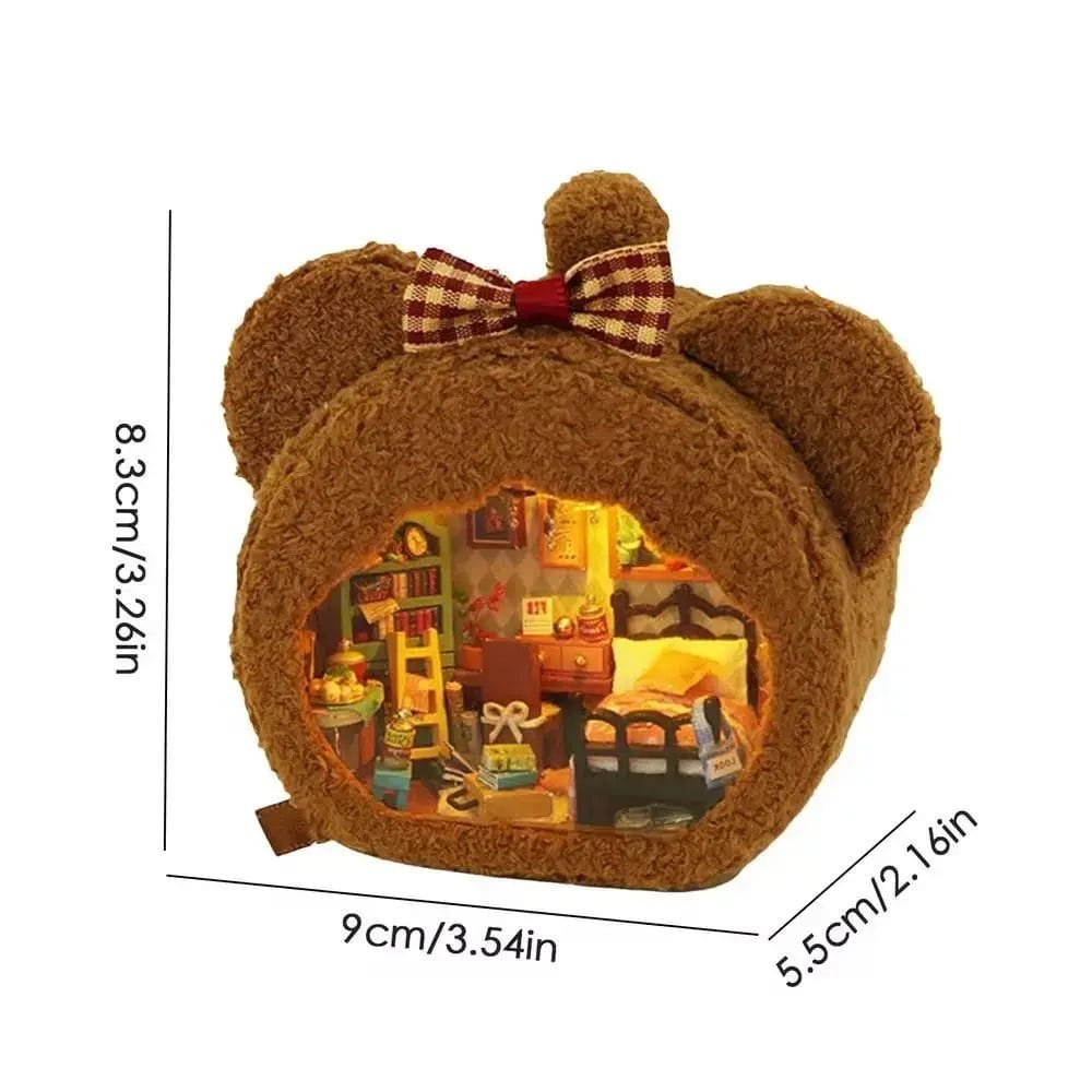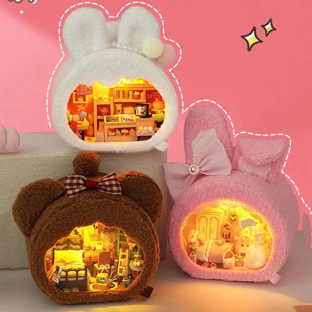 Handmade DIY Mini Wooden Dollhouse Warm Glow LED Lamp Small House Making Kit Plush Craftsmanship Cute Miniature Building Toys