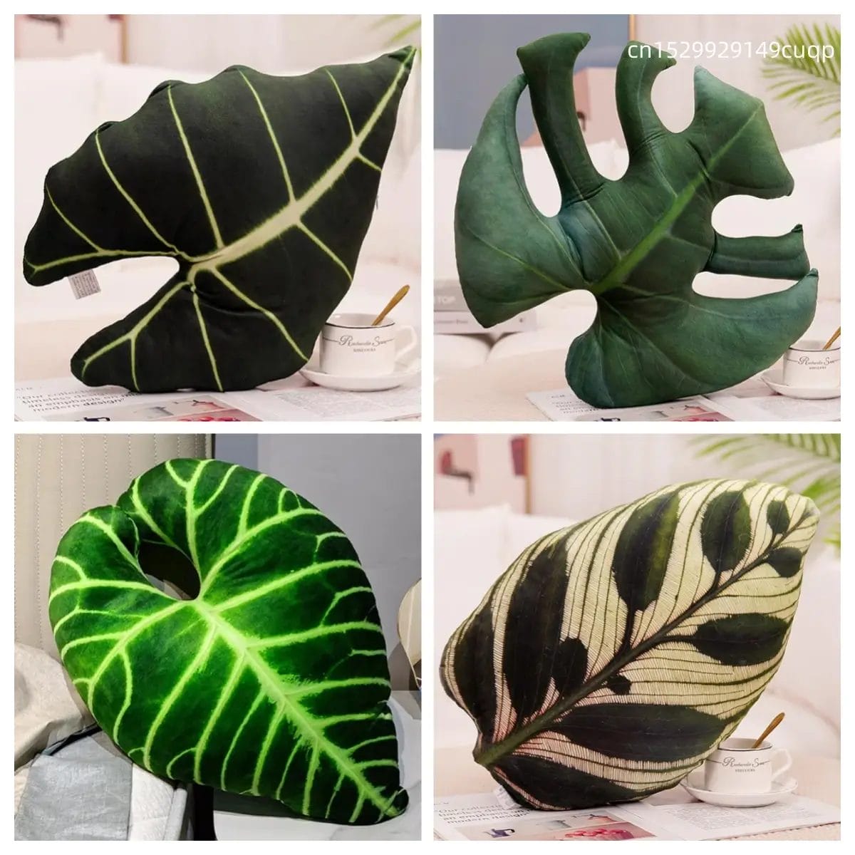 INS Nordic Style Green Leaves Plush Pillow Toy Cute Plantain Leaf Shape Throw Pillow Cushion Soft Girls Toys Home Decor