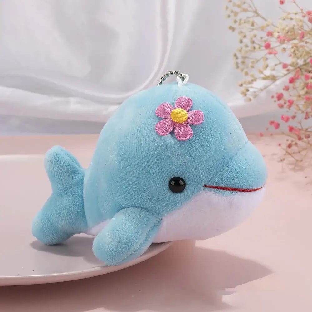 Kawaii Small Charms Pendant Cute Mini Dolphin Plush Toy Keychain PP Soft Cotton Stuffed Car Key Decoration Birthday Gifts