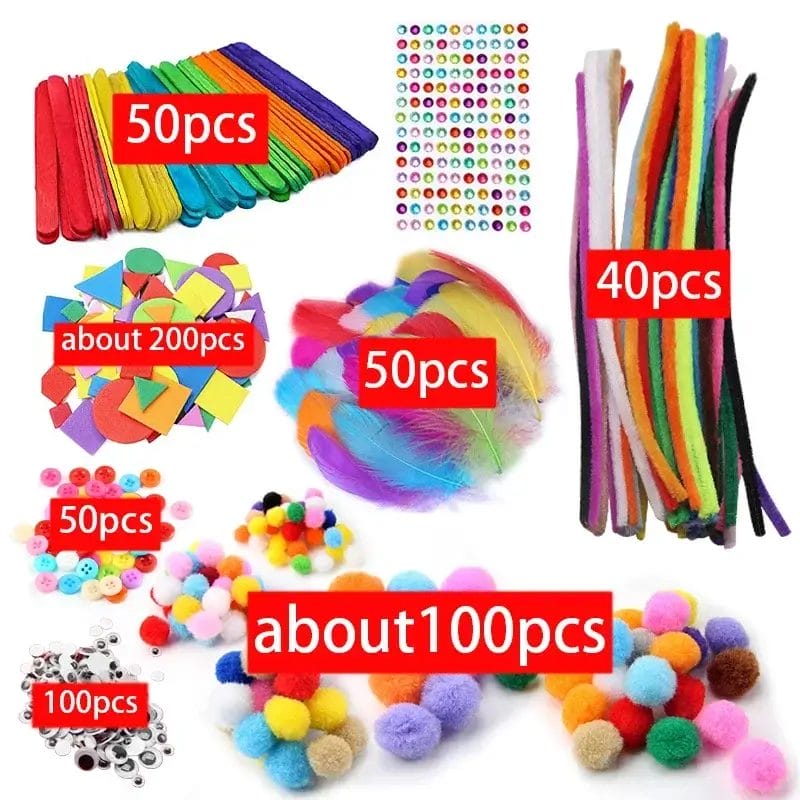 Kids Creative Plush Stick Pompoms Rainbow Colors Feather Eyes Sticker Educational DIY Toys Handmade Art Craft Devoloping Toys