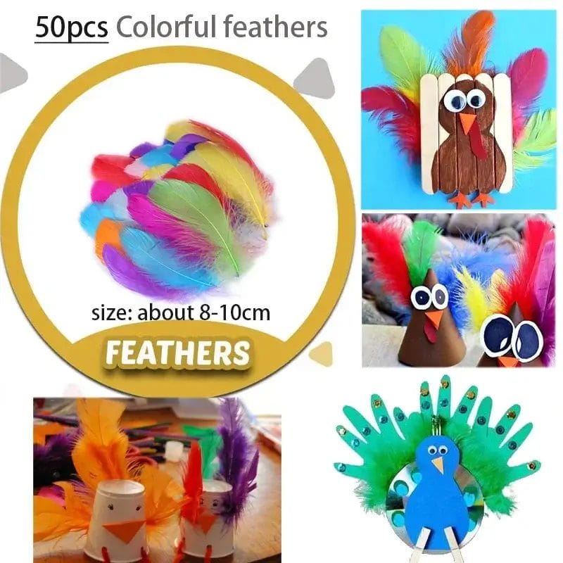 Kids Creative Plush Stick Pompoms Rainbow Colors Feather Eyes Sticker Educational DIY Toys Handmade Art Craft Devoloping Toys