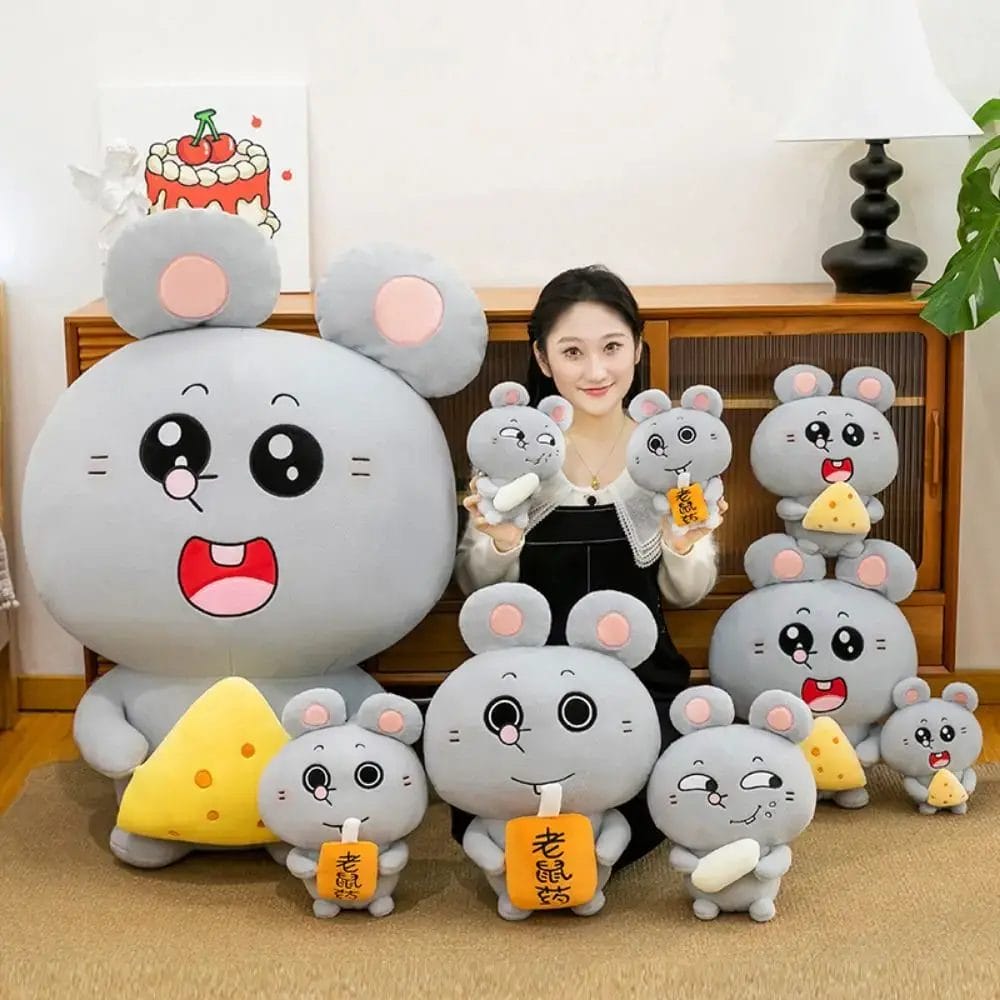 Kids Gifts Big Mouse Rat Plush Toy Cheese Grey Stuffed Mouse Doll Cute Kawaii Animal Plush Pillow Birthday Gift
