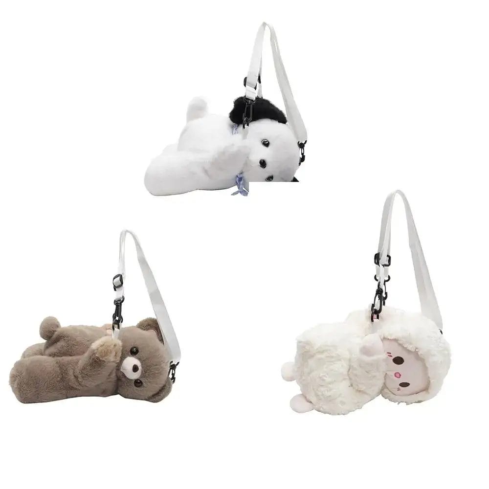 Korean Style Plush Animal Backpack Soft Doll Toy Sheep Crossbody Bag Adjustable Strap Bear Stuffed Animal Shoulder Bag Outdoor