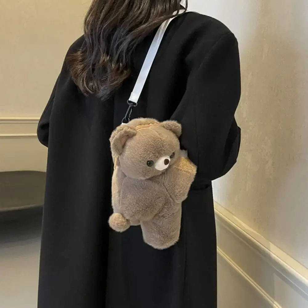 Korean Style Plush Animal Backpack Soft Doll Toy Sheep Crossbody Bag Adjustable Strap Bear Stuffed Animal Shoulder Bag Outdoor