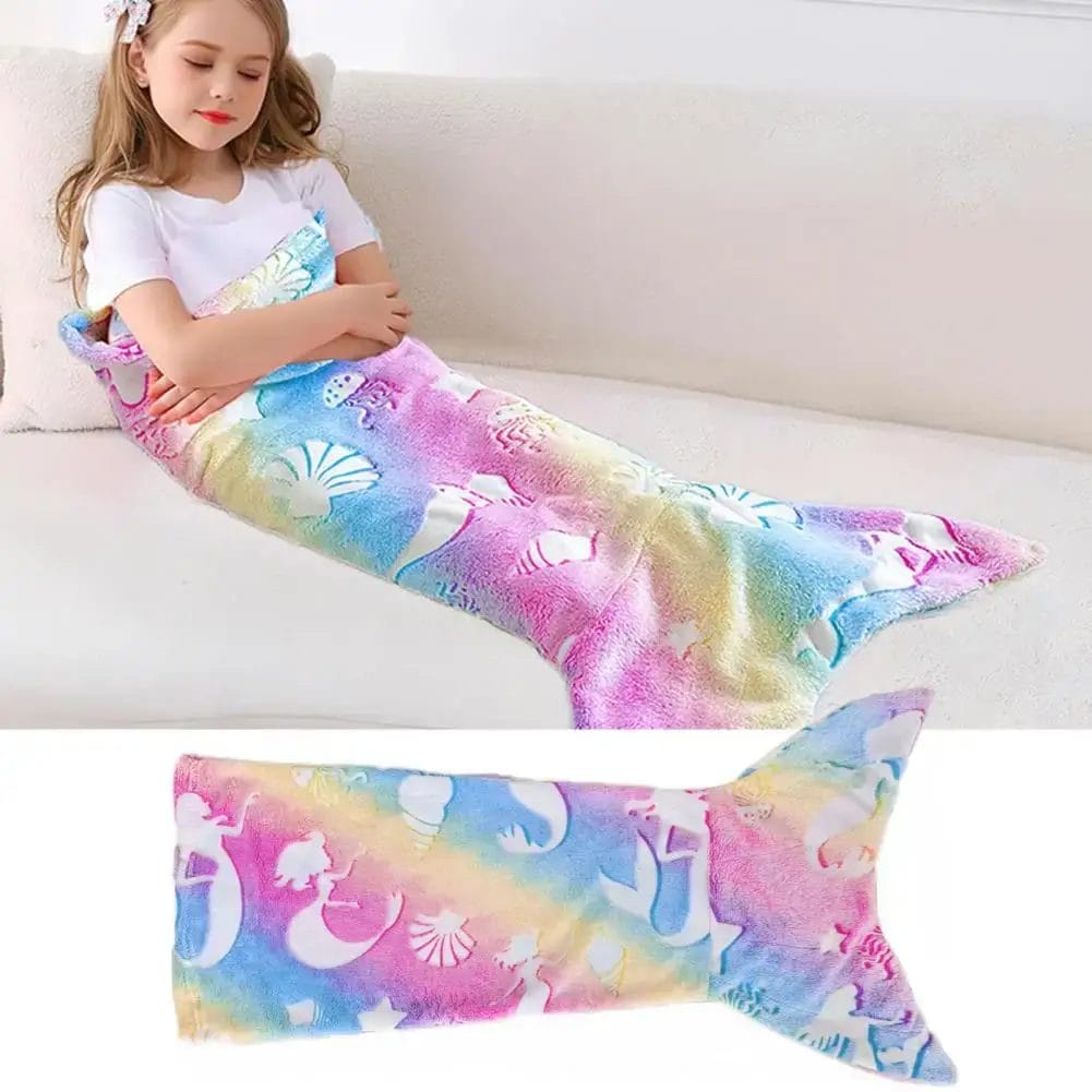 Lightweight Mermaid Tail Blanket Mermaid Tail Blanket for Toddlers Wear Resistant Plush Flannel Fleece Toy Breathable Design