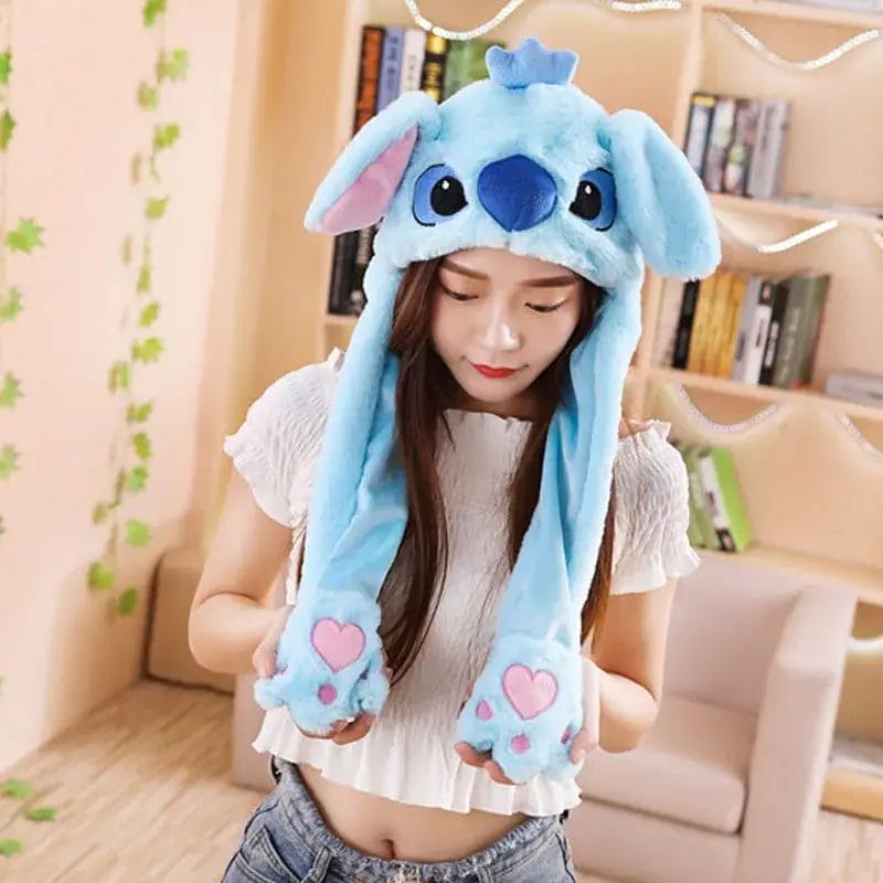 Moving Hat Rabbit Ear Plush Toy Airbag Cap Stitch Lighted Hat Mickey Minnie Mouse Doll Cosplay Hat Kid Children Birthday Gifts