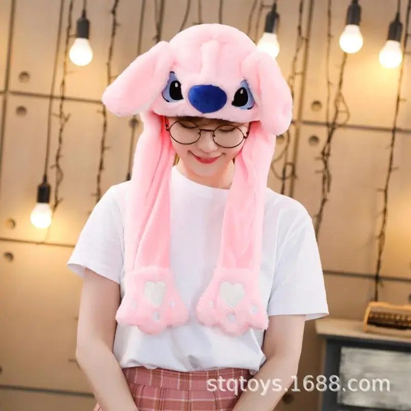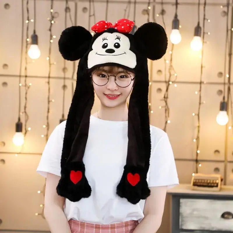 Moving Hat Rabbit Ear Plush Toy Airbag Cap Stitch Lighted Hat Mickey Minnie Mouse Doll Cosplay Hat Kid Children Birthday Gifts
