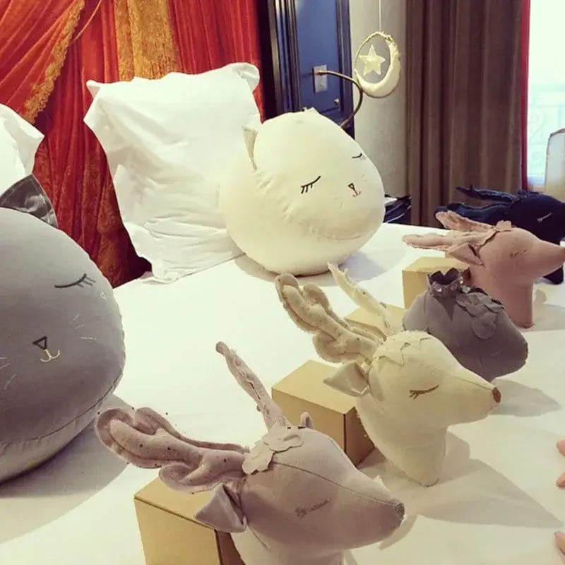 Nordic Plush Toys Animal Head Wall Mounts Decor 3D Deer Head Wall Hanging Art Kids Room Wall Decoration Birthday Xmas Toys Gift