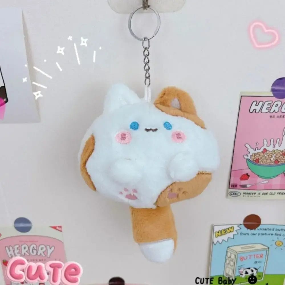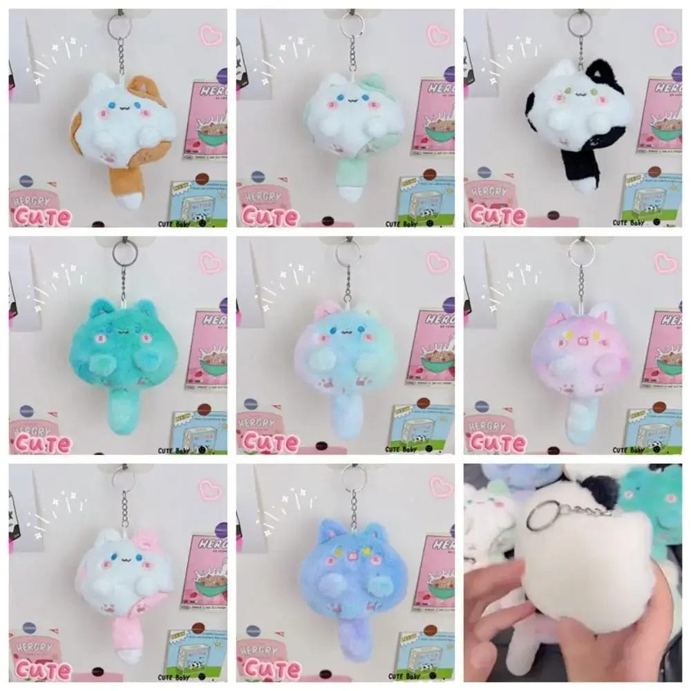 Pendant Long Tailed Cat Plush Keychain Squeak Cute Cat Soft Tail Plush Toy 12CM Kawaii Soft Stuffed Cat Keyring Children's Toys
