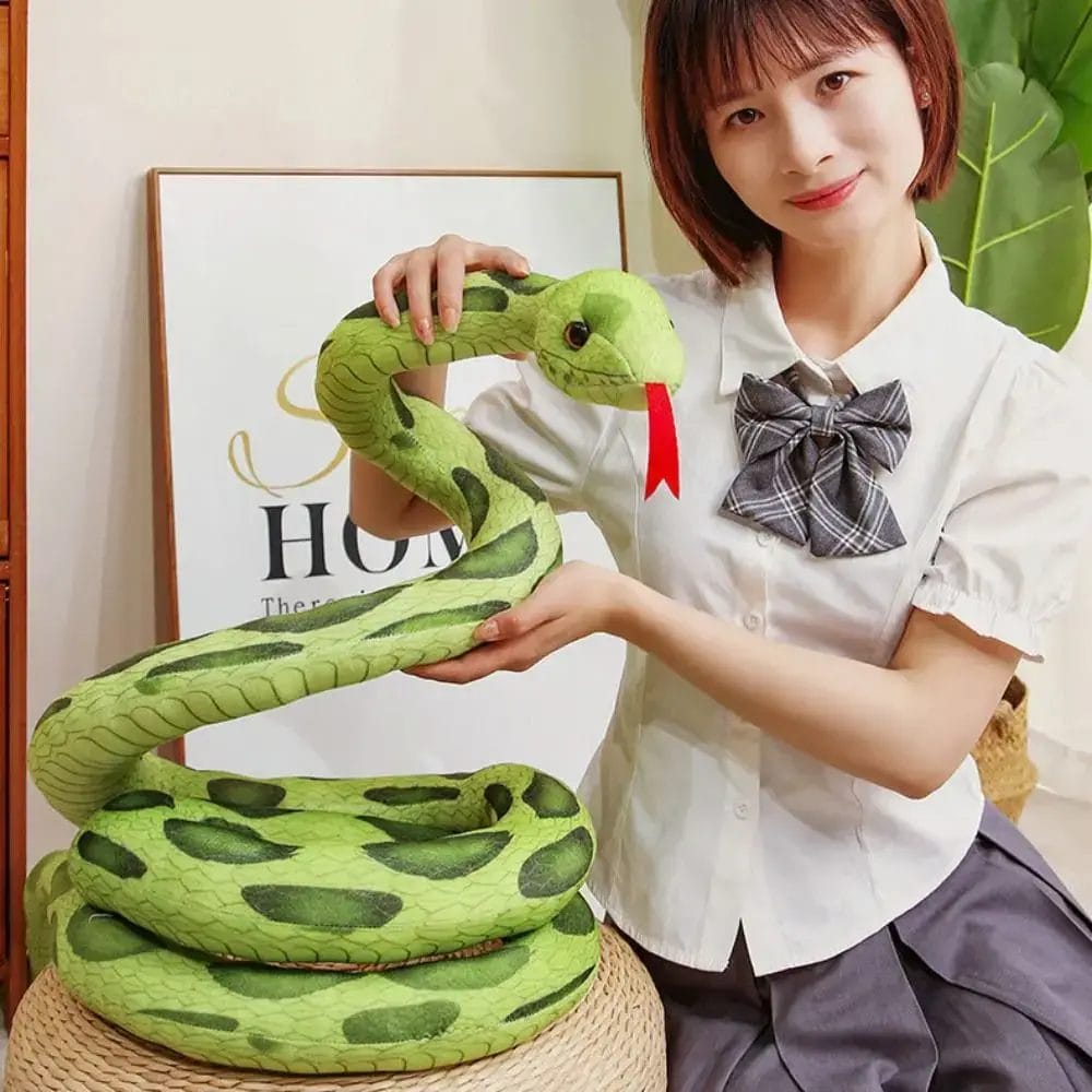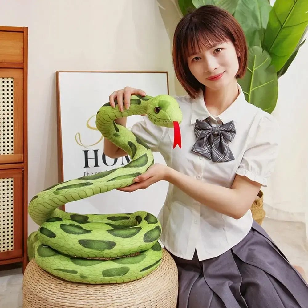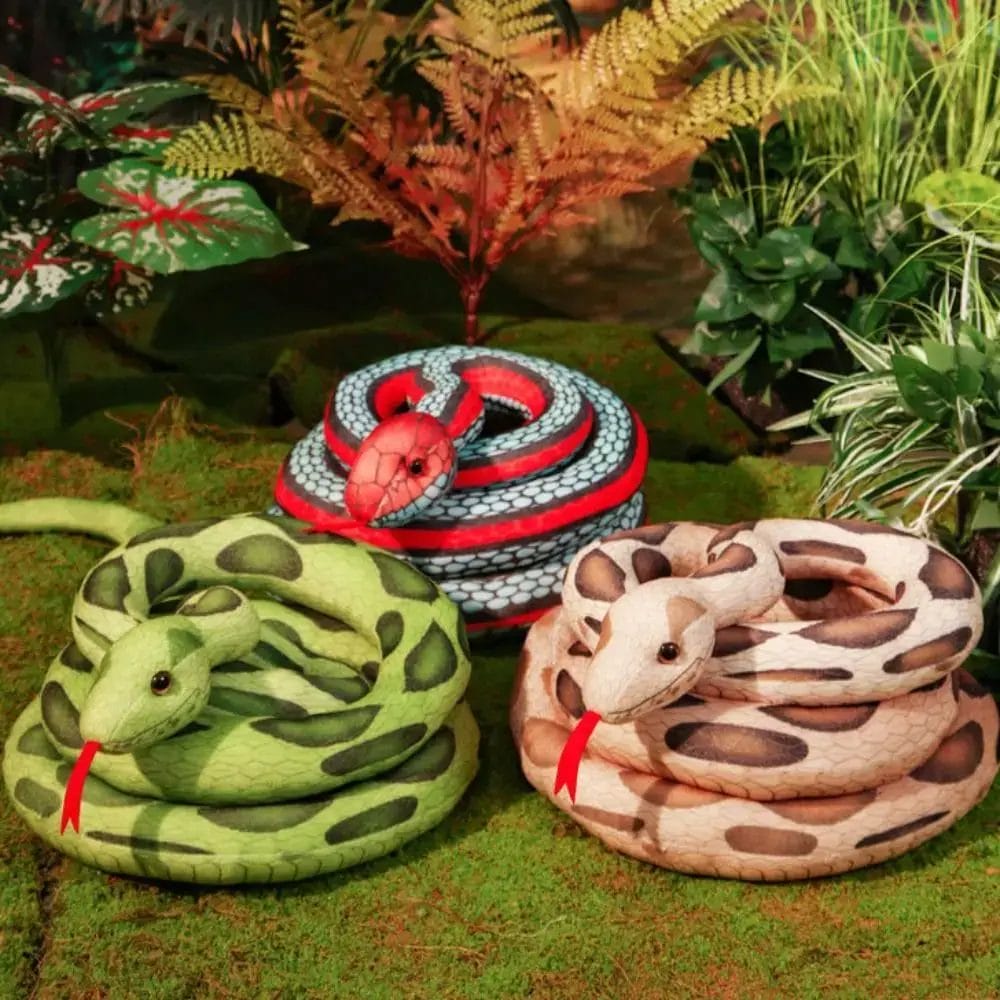 Plush Pillow Soft Simulation Snakes Plush Toy Scary Brown Snake Plushie Doll Long Green/Red Stuffed Wild Animal Home Decor