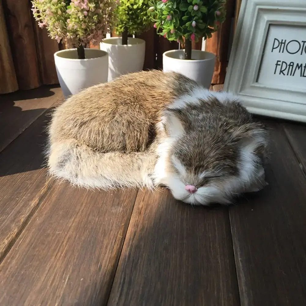 Realistic Simulation Cat Toy Mini Fur Animal Plush Cat Toy Figurines Creative Plush Sleeping Cats Home Decor Supplies