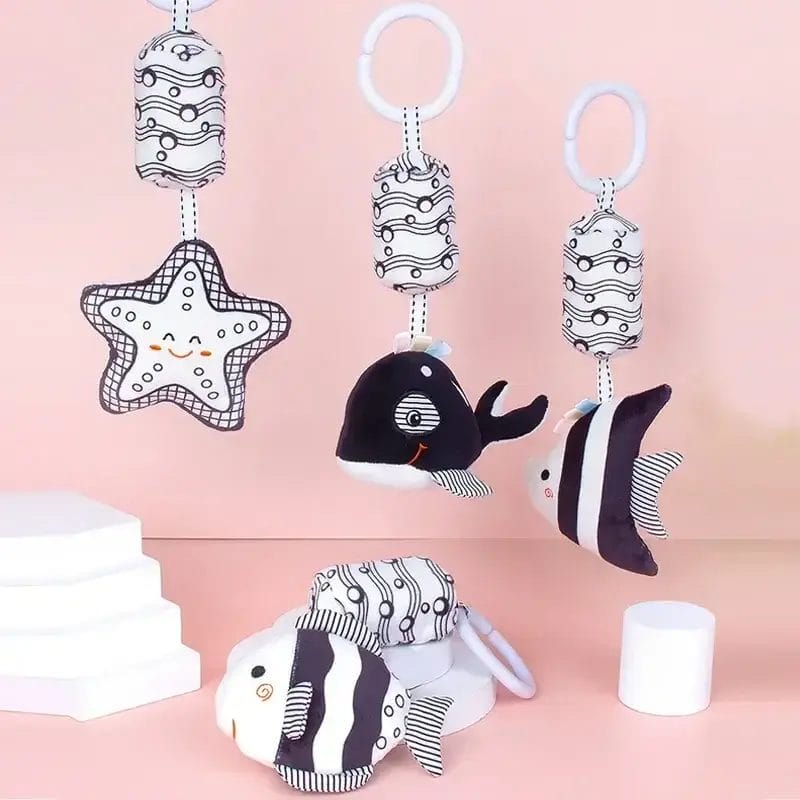 Stroller Bed Hanging Bell Plush Doll Baby Infant Rattles Newborn Black White Visual Grab Ability Training Toys игрушки для детей