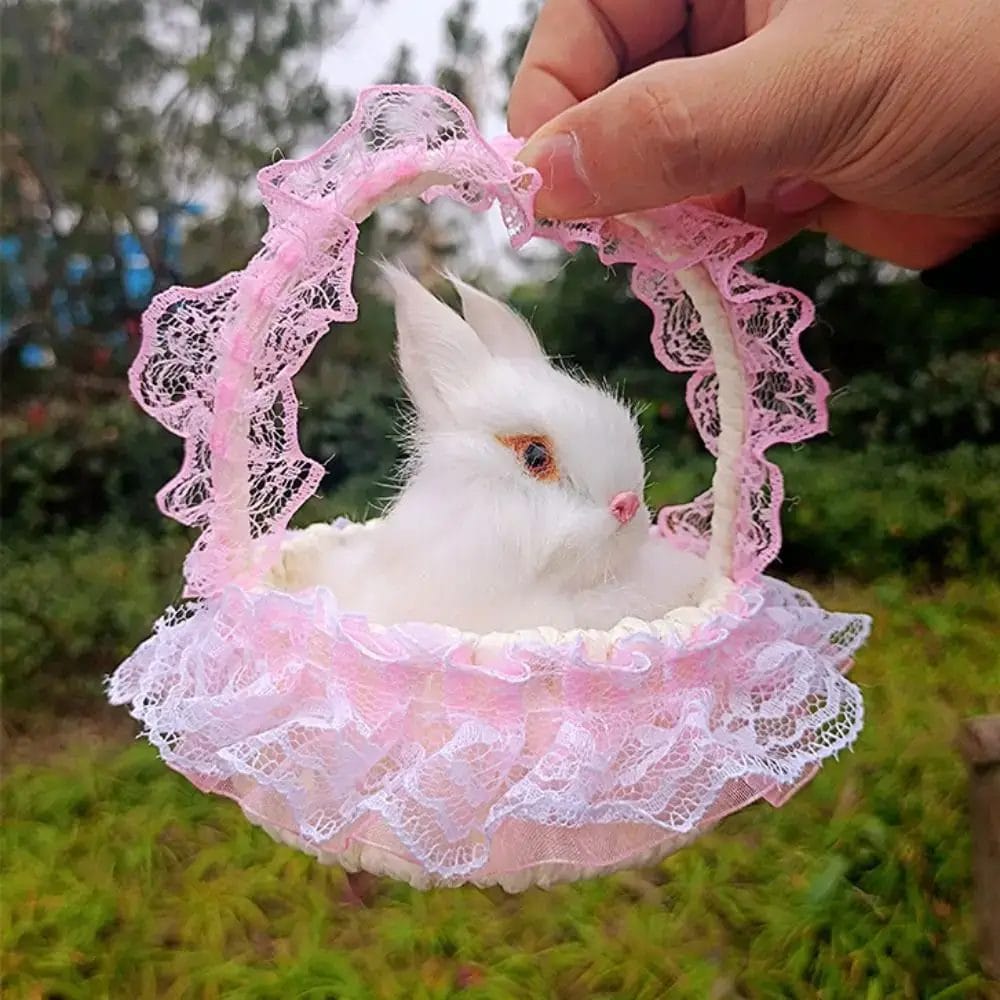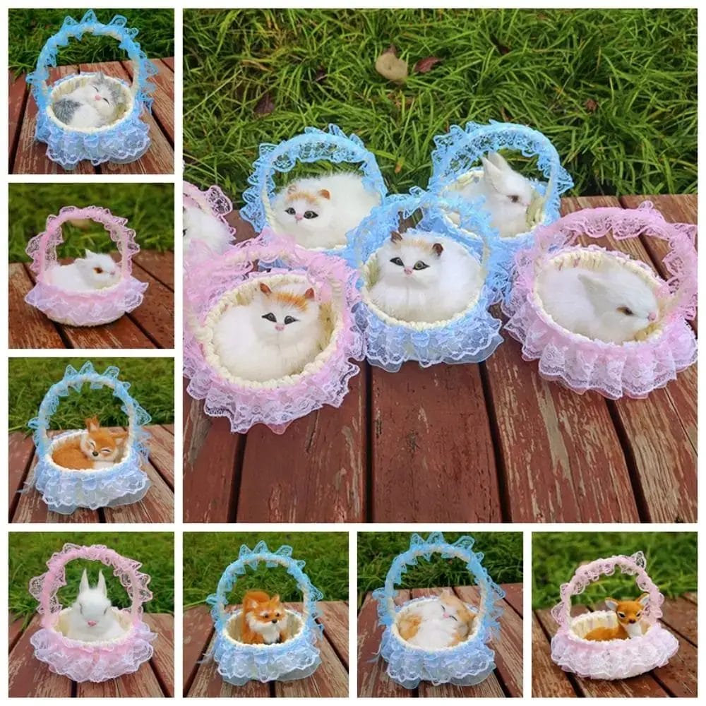 With Hanging Basket Simulation Rabbits Toy Figurines Fur Animal Simulation Cat Doll Miniatures Mini Plush Sleeping Cats